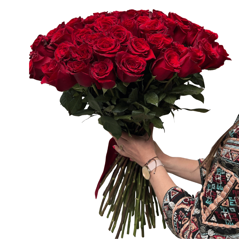 The roses are 60-70 cm and are packed in our black signature box, wrapped with the best quality ribbon and hand-delivered right to your door. The box has room for up to 60 roses. If your order is more than 60 roses, then you’ll get 2 boxes.